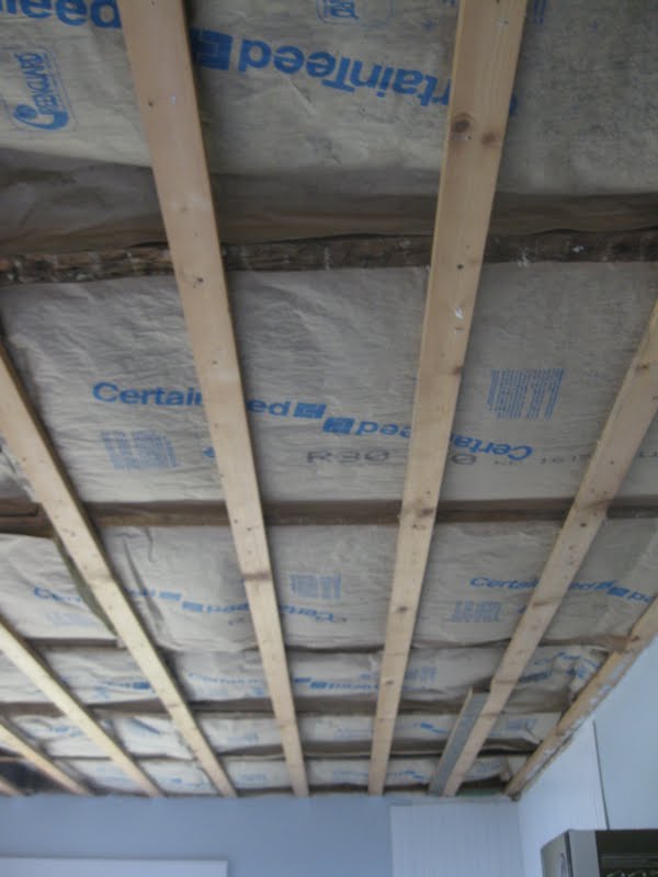 But, being of the insane variety that i am now sure I am, I proceeded on.  Shoveling the insulation onto the floor as I went.